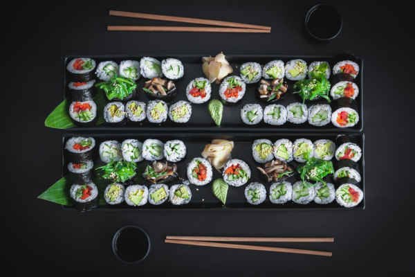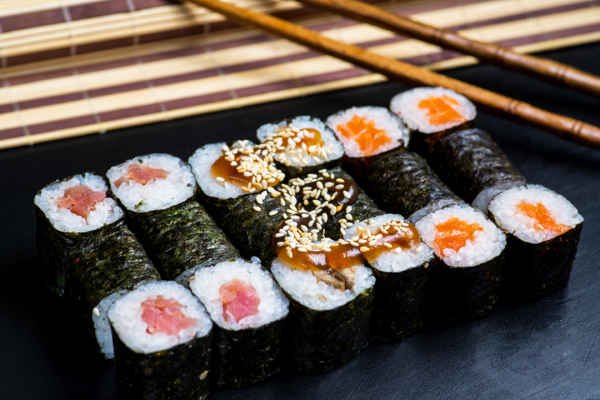 2 California rolls, 2 crunchy spicy tuna rolls, 2 salmon avocado rolls, 2 eel cucumber rolls, 2 shrimp tempura rolls and 2 cucumber…